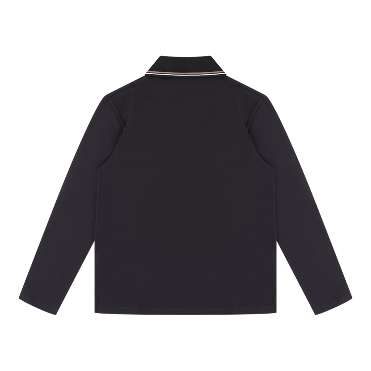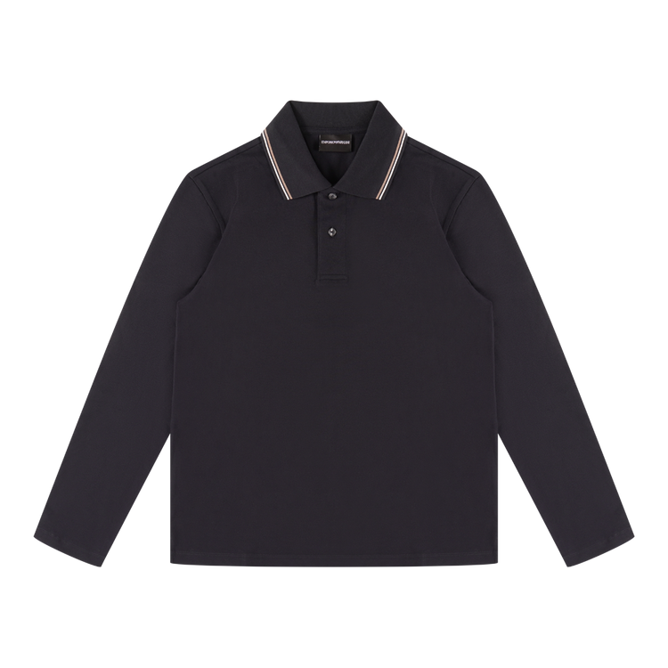 Donkerblauwe Emporio Armani polo longsleeve met kraag en knopen. Gemaakt van 96% katoen en 4% elastaan voor een comfortabele, licht stretchende fit perfect voor een casual zomerlook.