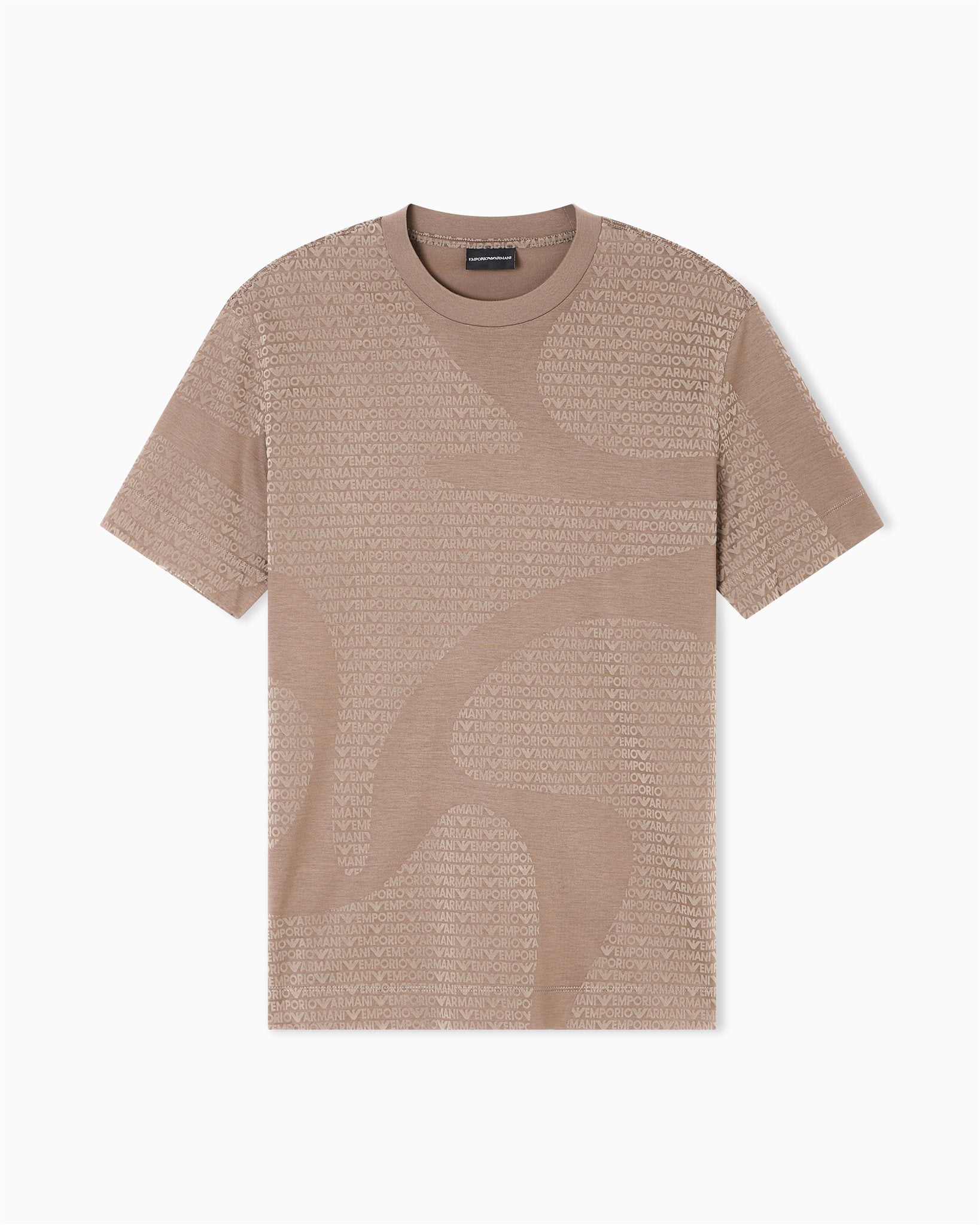 T-shirt met ronde hals van een mix van katoen, jersey en lyocell, met een all-over zeer dichte flockprint met logo-opdruk, een techniek die zorgt voor een uniek, fluweelachtig, reliëfgevoel. Materiaal: Stof: 70% lyocell, 30% katoen