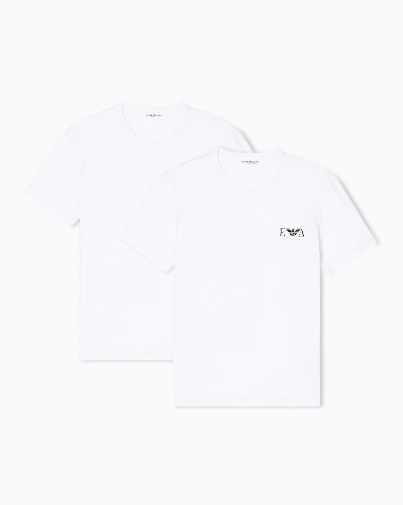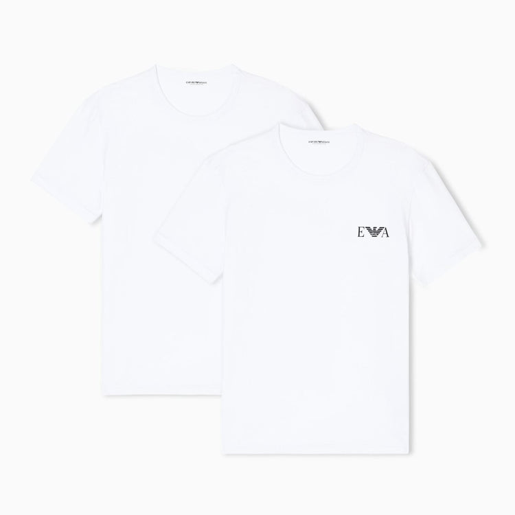 Tweepak T-shirts van stretchkatoenen jersey met ronde hals en logoprint op de borst. Nauwsluitend model. Dit artikel behoort tot de Essentials-collectie, de capsulecollectie van Emporio Armani, ontworpen voor een garderobe die aan de eisen van elk seizoen voldoet. Deze "essentiële", veelzijdige items zijn een must-have voor de herengarderobe. Materiaal: 95% katoen, 5% elastaan