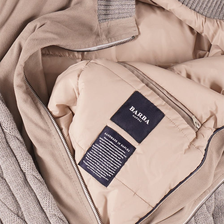 Barba Napoli presenteert een stijlvolle en comfortabele lichte jas voor heren. Gemaakt van 100% echt suède leer, deze bomberjas heeft zachte gebreide wollen mouwen. Het is ontworpen met elastische zoom, manchetten en kraag, ritssluiting en gewatteerd interieur met een zak. Materiaal: 100% suède leer