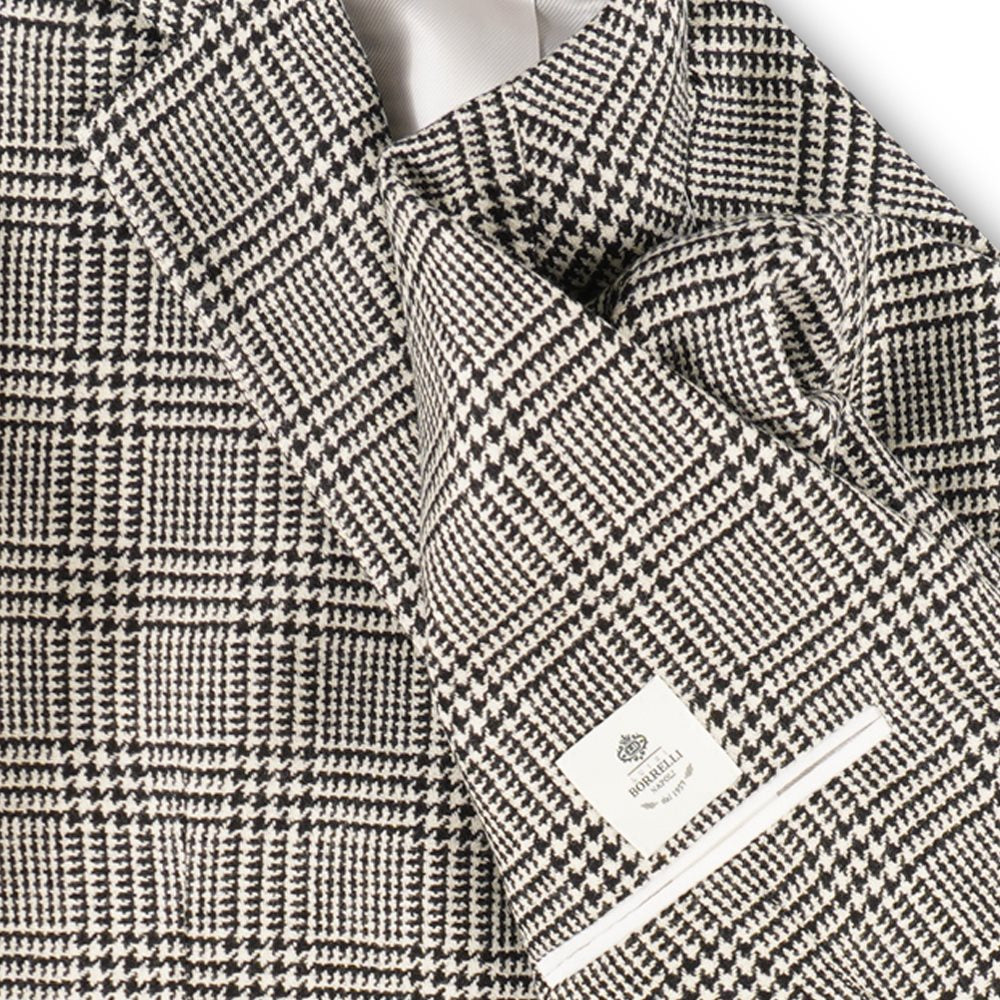 Het Borrelli colbert in zwart-wit met strepen is een must-have voor de man die zoekt naar een combinatie van elegantie en kwaliteit. Vervaardigd uit luxueuze stoffen, biedt dit colbert een perfecte pasvorm en uitzonderlijk comfort. Het klassieke ontwerp met verfijnde details maakt het geschikt voor zowel formele als informele gelegenheden.