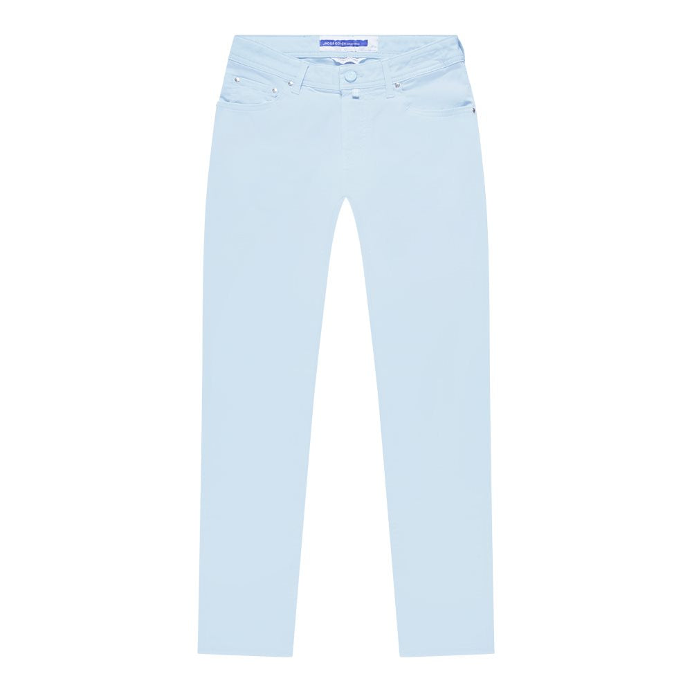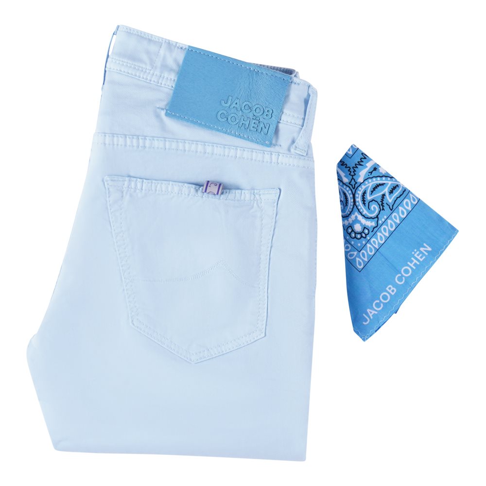 De Jacob Cohën broek in het lichtblauw is gemaakt van 100% katoen en heeft een slim fit pasvorm. Perfect voor een stijlvolle en comfortabele look.