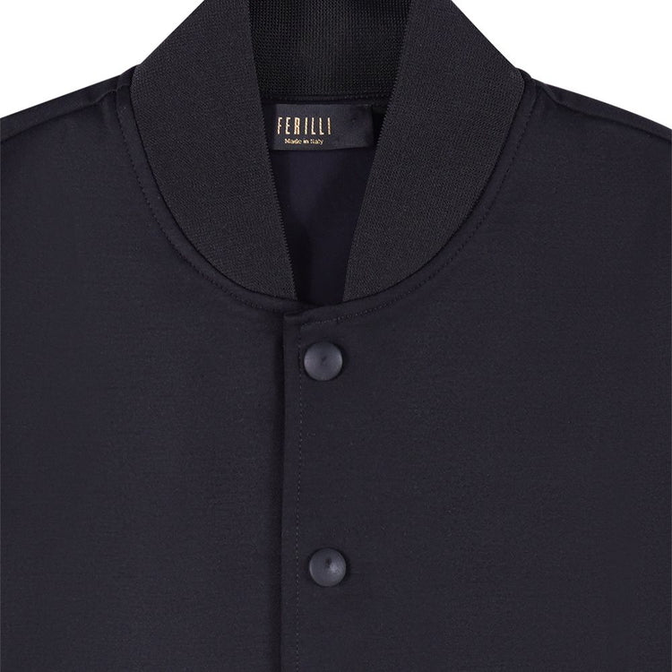 Zwarte Sport Bomber van Ferilli. De jas heeft een knoopsluiting en twee steekzakken met ritssluiting. Bestaat uit 73% polyamide en 27% elastaan.