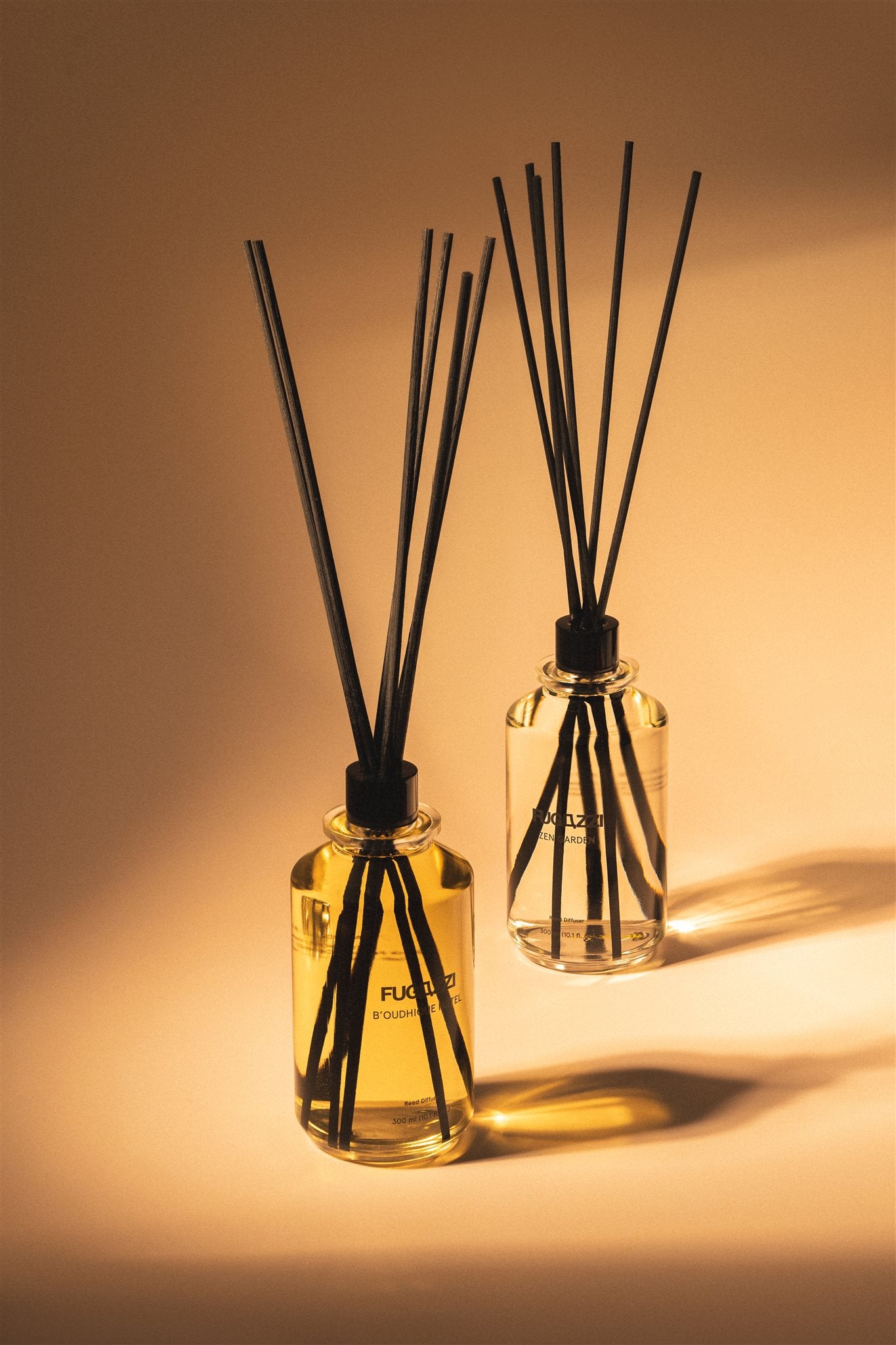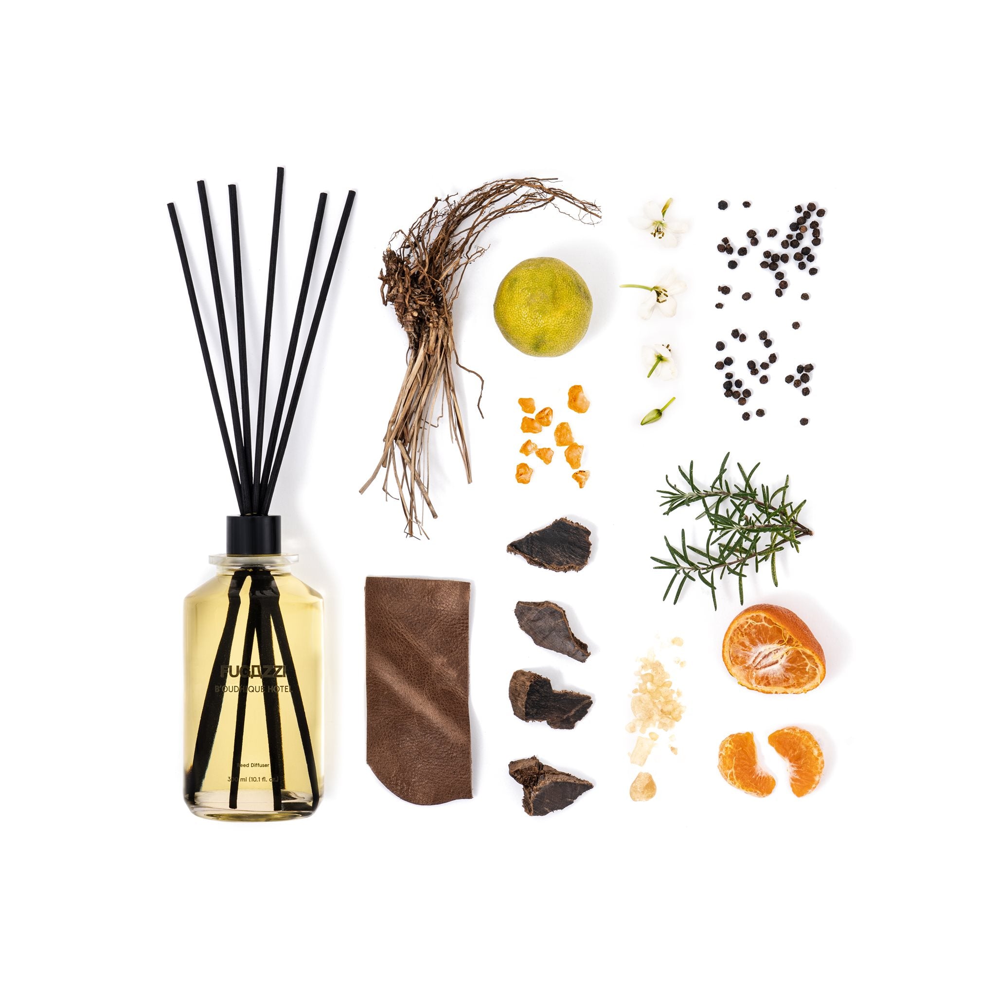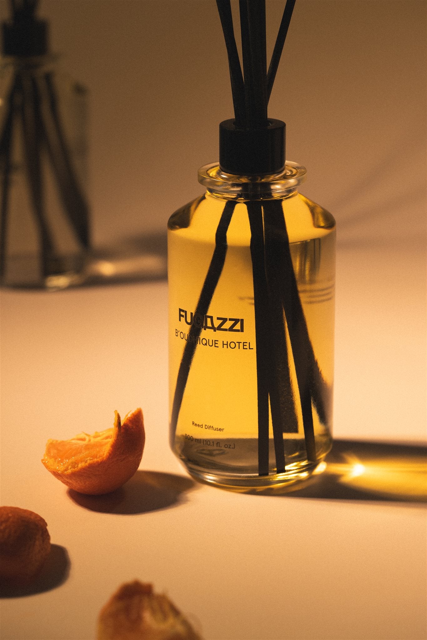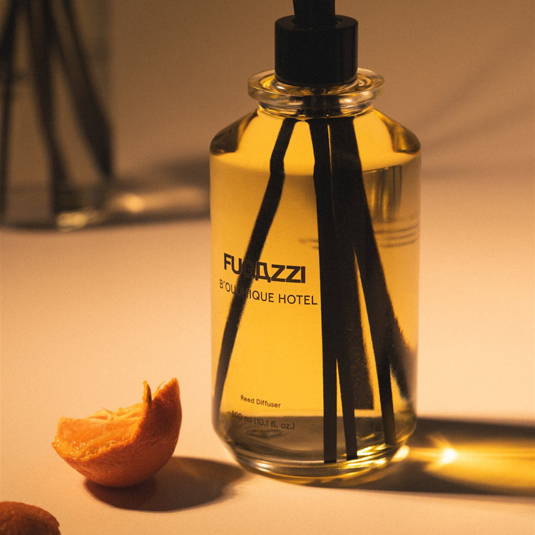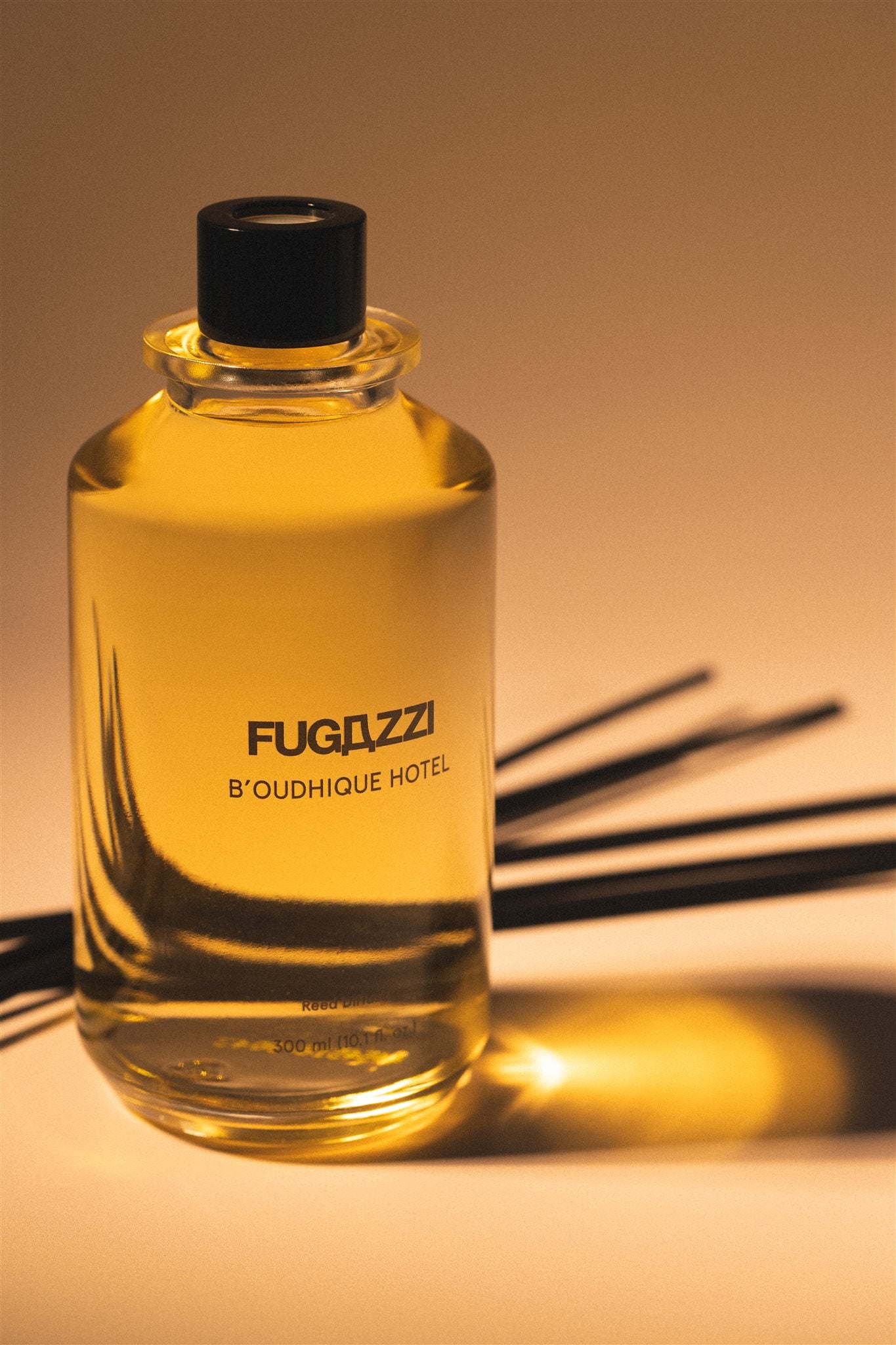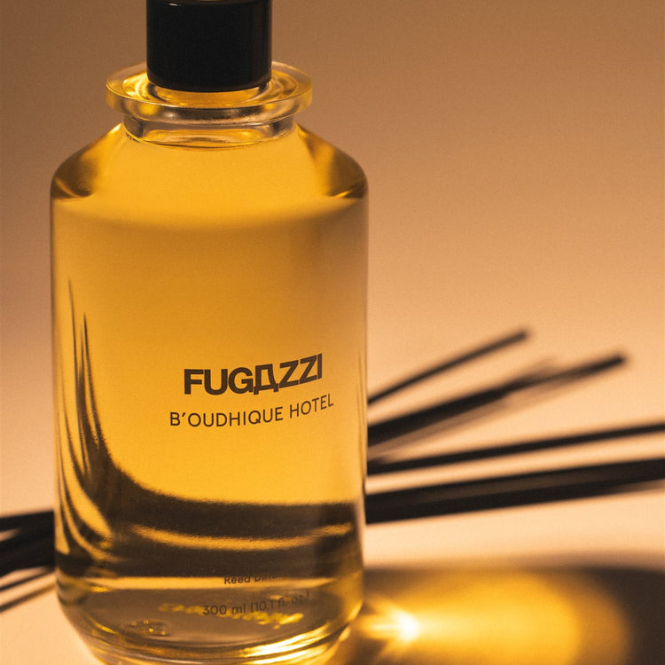 B’Oudhique Hotel Diffuser van Fugazzi is een verfijnd, houtachtig interieurparfum die een warme, uitnodigende sfeer creëert in huis. Levendige tonen van bergamot en zwarte peper smelten samen met de warmte van oranjebloesem en rozemarijn. Diepe accenten van oud en vetiver verrijken de geur voor een elegante en gelaagde ambiance.