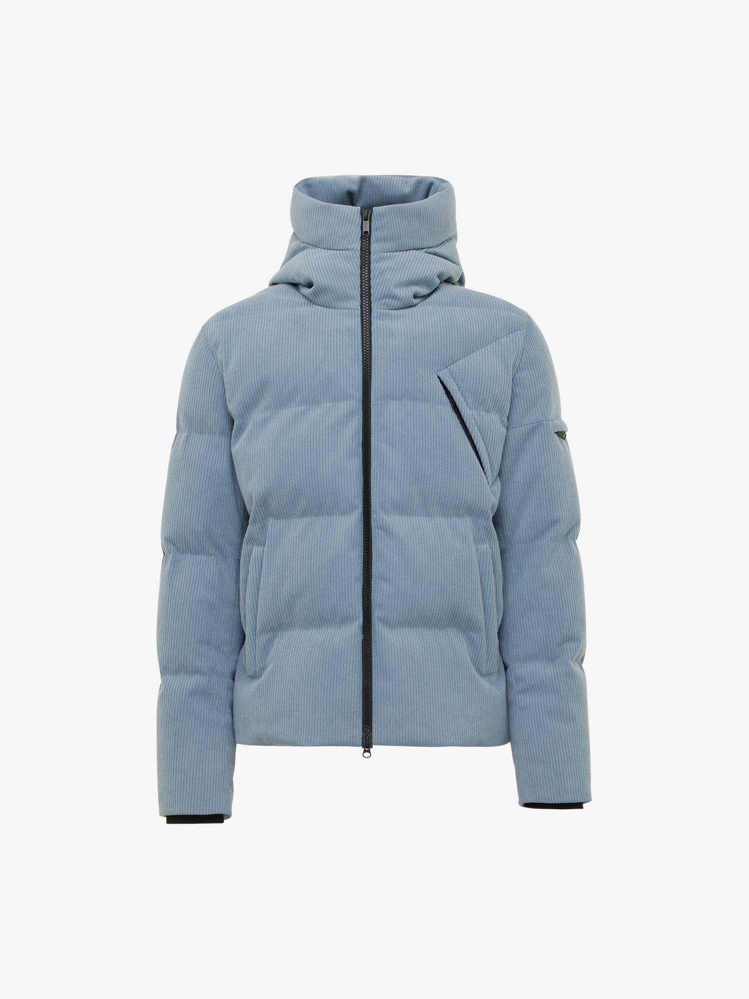 De opvallende ribstructuur geeft deze jas een luxe en moderne uitstraling, terwijl de gewatteerde voering zorgt voor optimale warmte op koude dagen. Het waterafstotende corduroy-materiaal beschermt tegen lichte regen en sneeuw, zodat je stijlvol en droog blijft. De verstelbare capuchon, stevige rits en praktische zakken maken de jas zowel functioneel als modieus. Materiaal: 100% Polyester