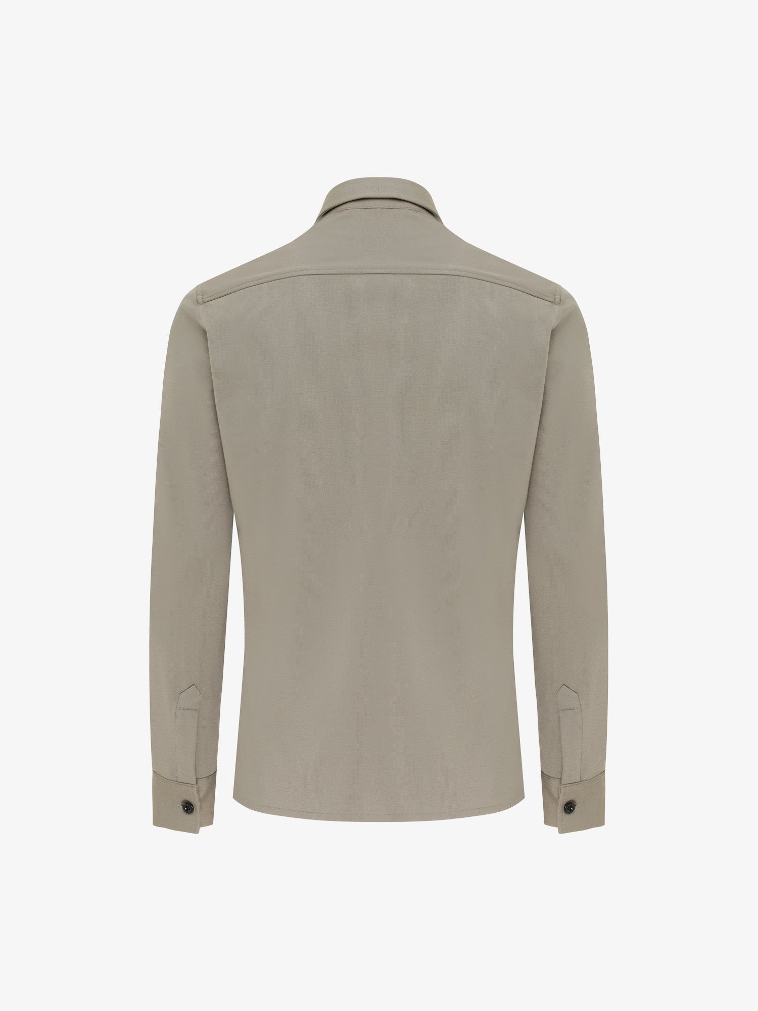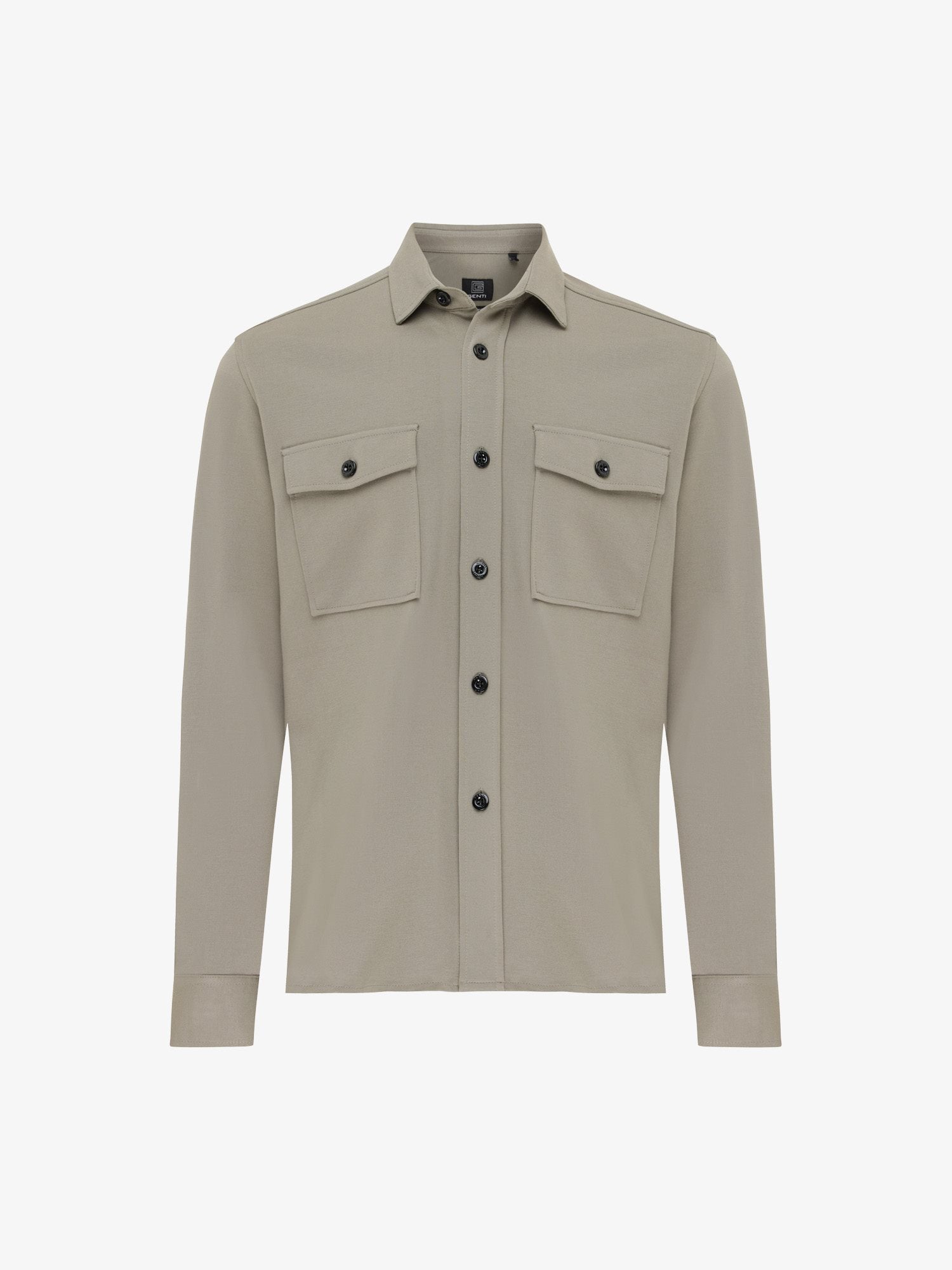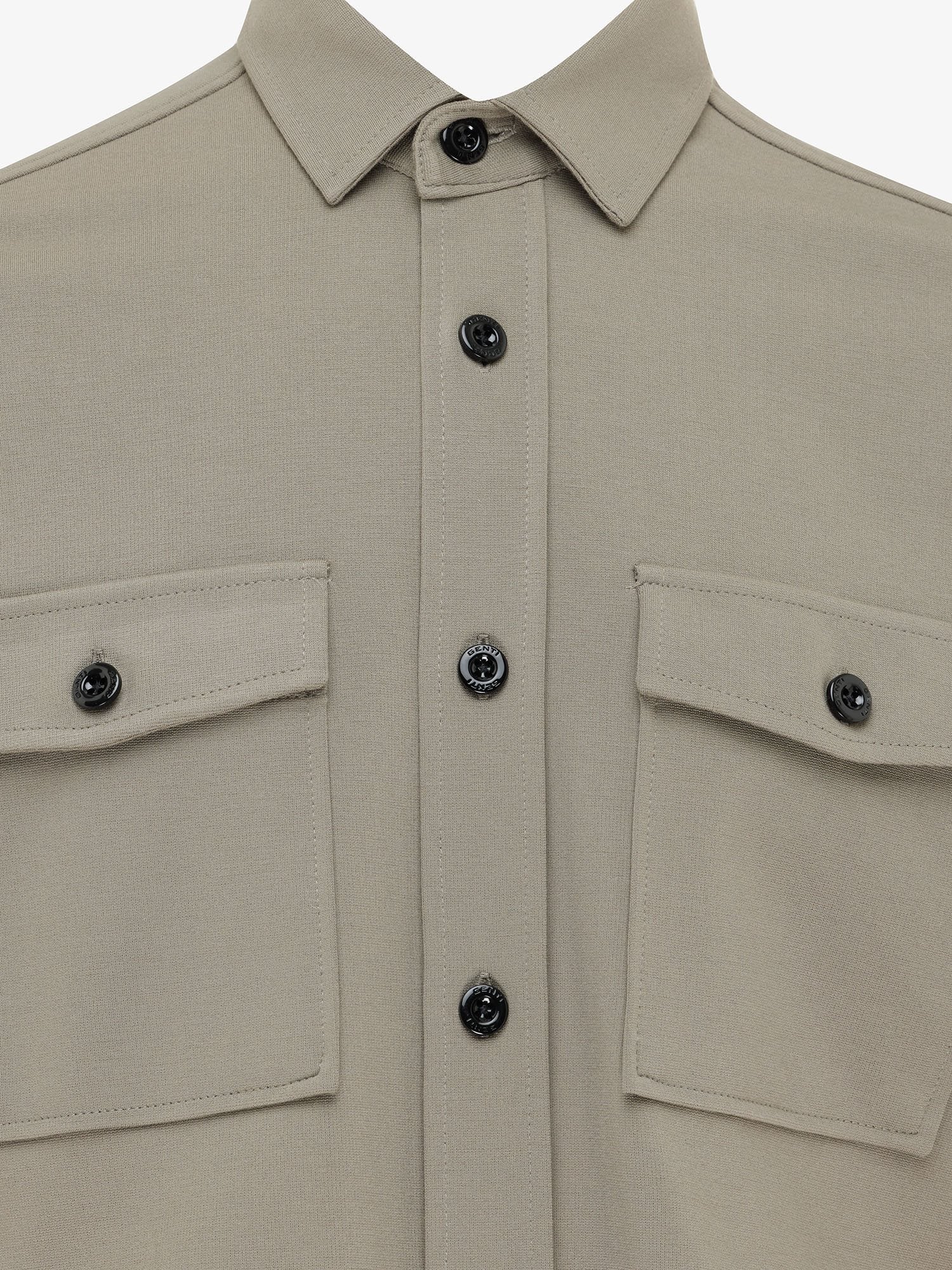 Dit tijdloze midtown overshirt combineert een cleane uitstraling met optimaal comfort. Gemaakt van een technische mix van viscose (64%), polyamide (31%) en elastaan (5%) voor een soepele fit en subtiele stretch. De stevige stof heeft een luxe look en voelt zacht aan op de huid. Afgewerkt met dubbele borstzakken, klassieke kraag en knoopsluiting. Perfect als tussenlaag of als statement piece op zichzelf.