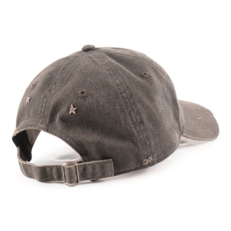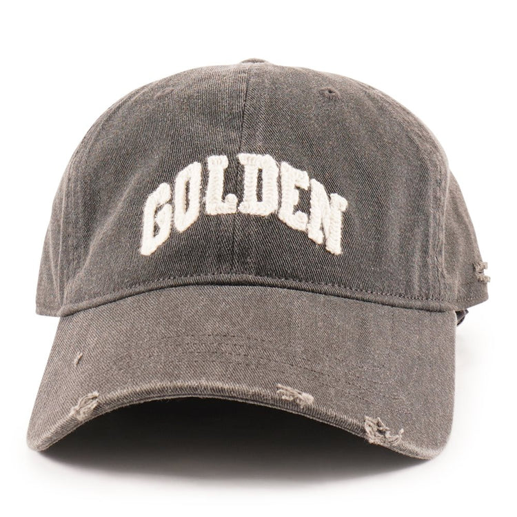 Deze grijze katoenen baseballpet met een met destroyed look is voorzien van het in wit geborduurde "Golden"-logo en andere details die een doorleefde uitstraling geven. Materiaal: 100% katoen