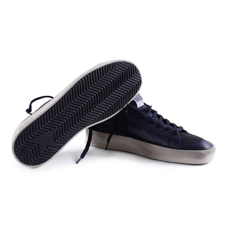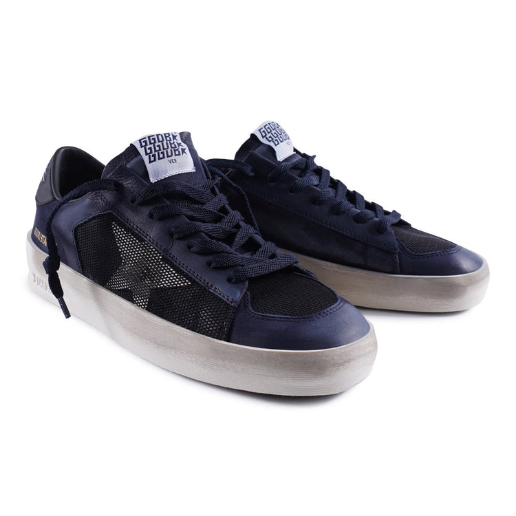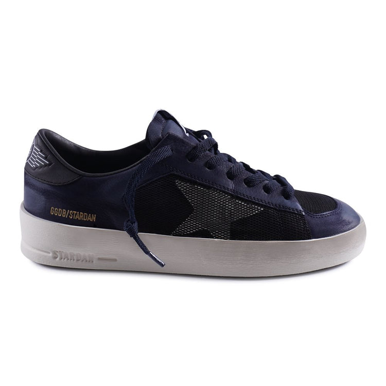 De Golden Goose Stardan sneaker is een stijlvolle keuze met een mix van blauw, off-white en wit. Het ontwerp is gemaakt van nylon en heeft een moderne uitstraling. De combinatie van kleuren en materialen maakt de sneaker veelzijdig en perfect voor een casual, trendy look.