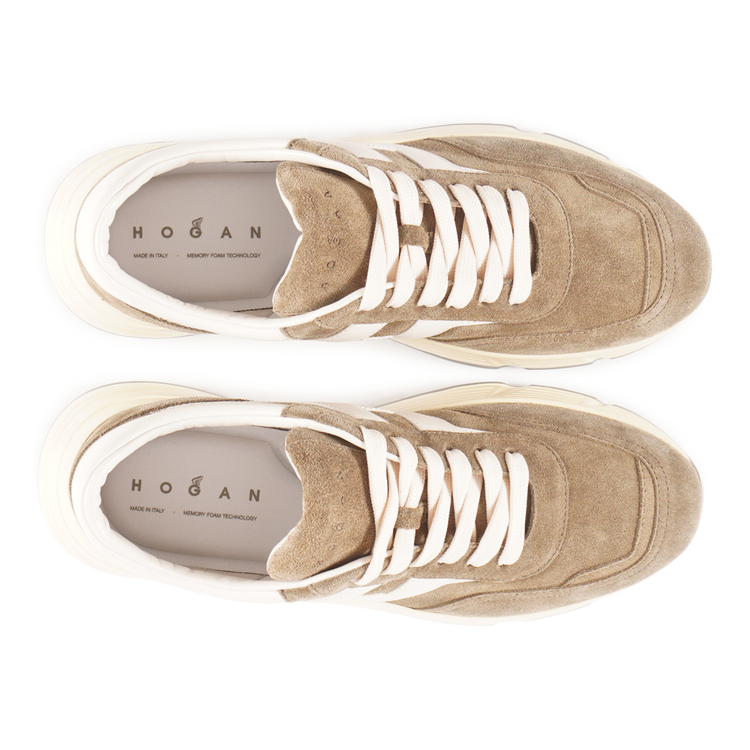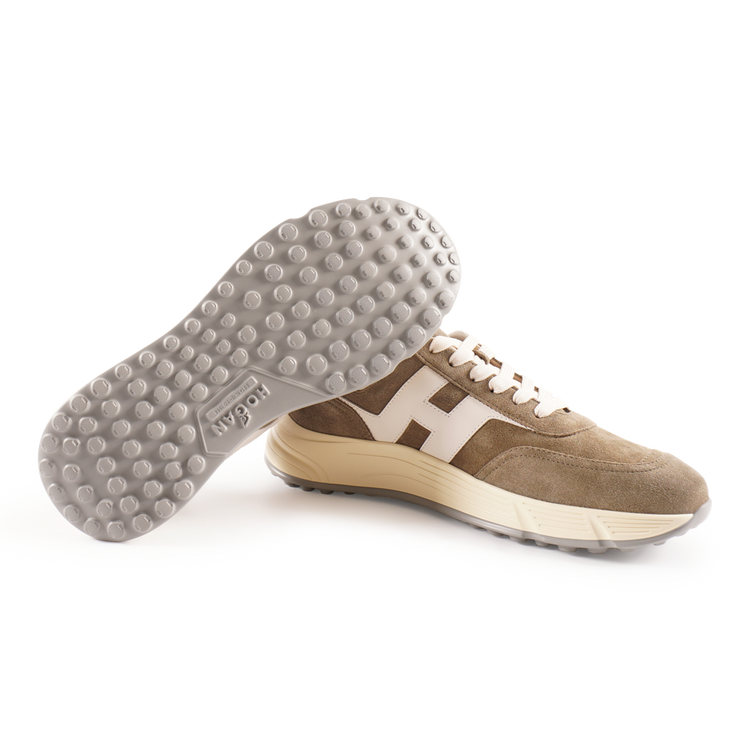 De Hogan sneaker in groen van suède, leer, katoen en rubber is een luxe herenschoen die stijl en comfort moeiteloos combineert. Deze veterschoen past perfect bij zowel casual als zakelijke looks en geeft iedere outfit een verfijnde en moderne uitstraling.