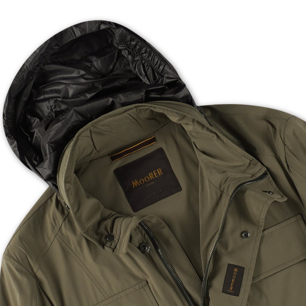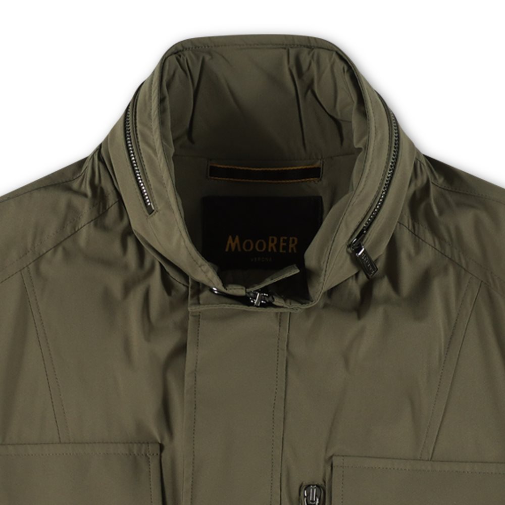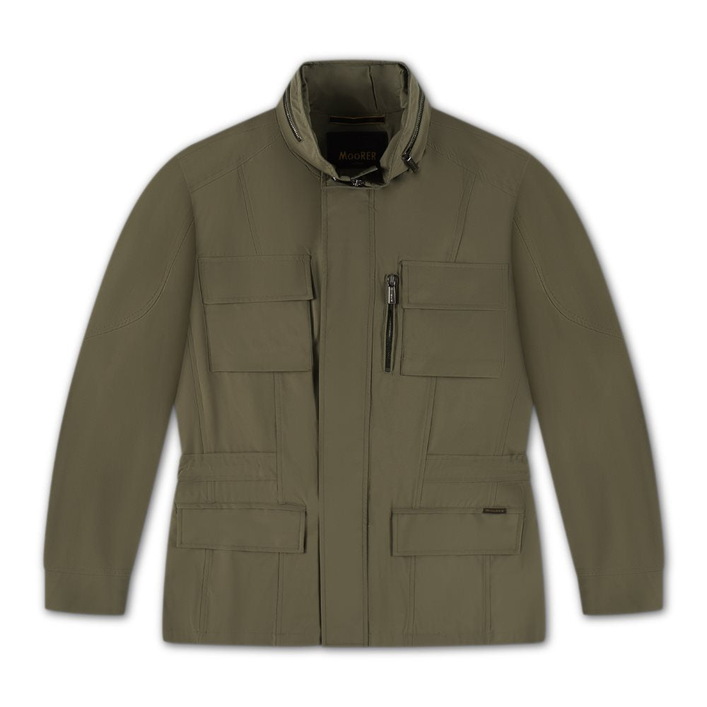 Manolo jas van Moorer in groen, voorzien van een rits en vier voorzakken voor een stijlvolle uitstraling. Materiaal: 88% polyamide, 12% polyurethaan. Voering: 100% polyamide.