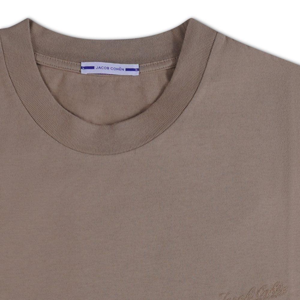 Het Jacob Cohën T-shirt in taupe is gemaakt van 100% katoen en biedt een zacht en ademend draagcomfort. Het model valt normaal en is perfect voor de zomer.