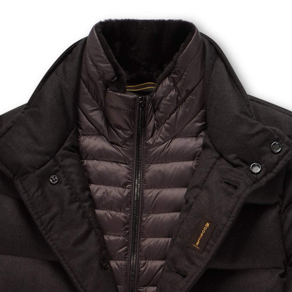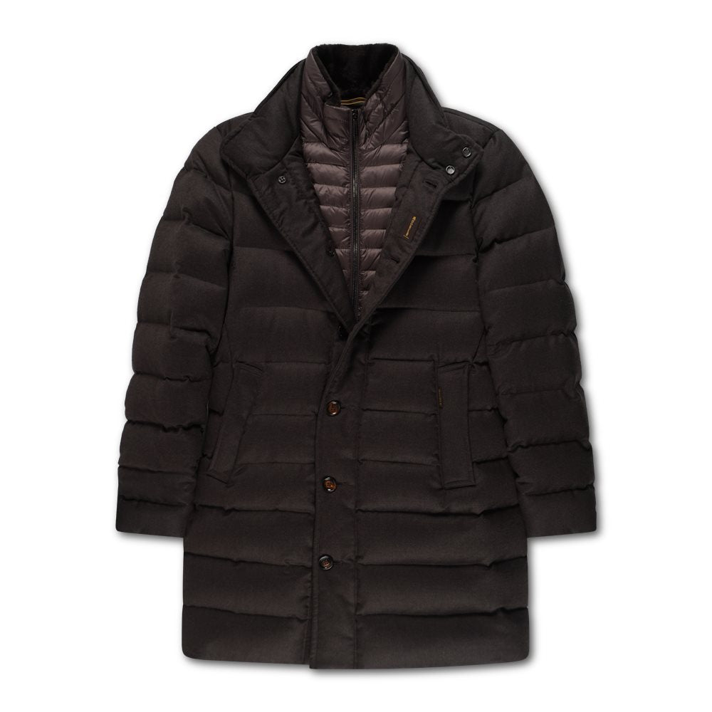 De Moorer jas Alfieri is een luxe, lang model dat comfort en stijl samenbrengt. Gemaakt van een hoogwaardige wol- en cashmereblend, biedt deze jas een verfijnde uitstraling en een zachte, warme feel. De binnenkant is extra warm gevoerd en voorzien van een dubbele jas voor optimale isolatie, waardoor hij ideaal is voor de wintermaanden. Het model heeft twee praktische zakken en een tijdloze, elegante look, perfect voor wie zoekt naar een stijlvolle en functionele jas voor koude dagen.