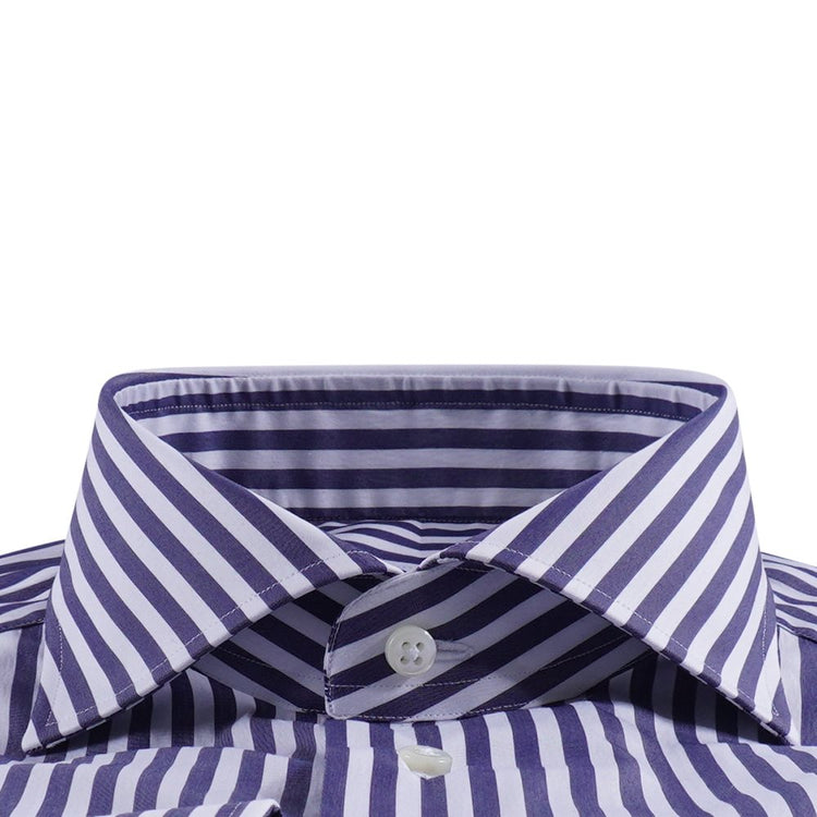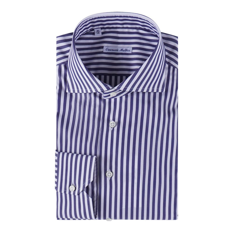 Dit overhemd van Emanuele Maffeis is uitgevoerd in een verfijnd witblauw streepdesign dat zorgt voor een elegante en tijdloze uitstraling. De zachte katoenen stof voelt comfortabel aan en draagt de hele dag aangenaam, terwijl de klassieke kraag en cleane belijning het shirt een formeel maar veelzijdig karakter geven. Dankzij de ademende kwaliteit is dit overhemd geschikt voor zowel zakelijke als casual gelegenheden. Materiaal: 100% katoen
