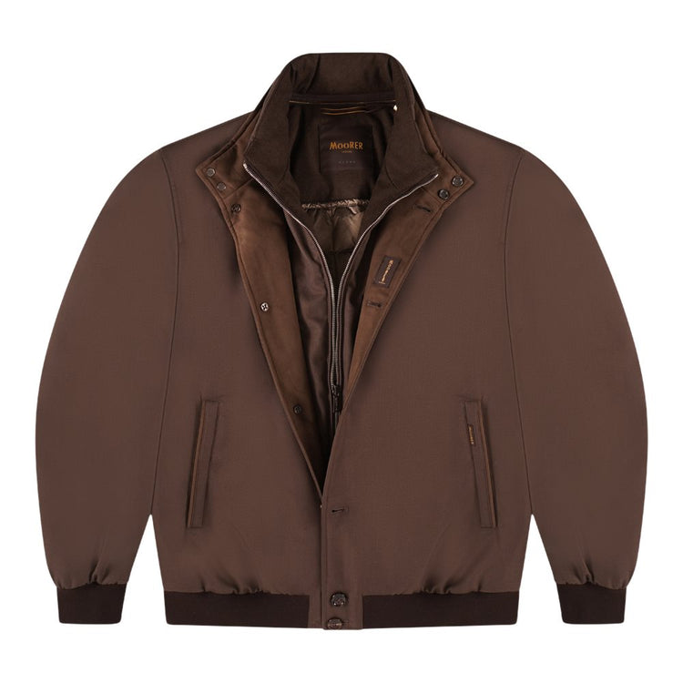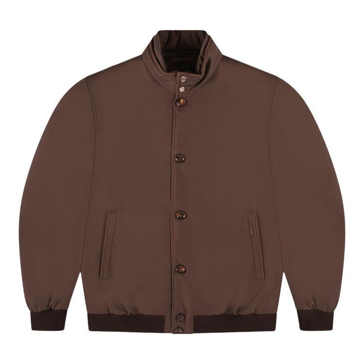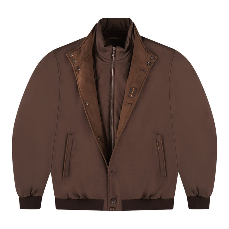 Bomberjack . Gemaakt van kreukvrij technisch materiaal, met een uiterlijk en gevoel dat lijkt op flanel, functioneel, water- en winddicht.