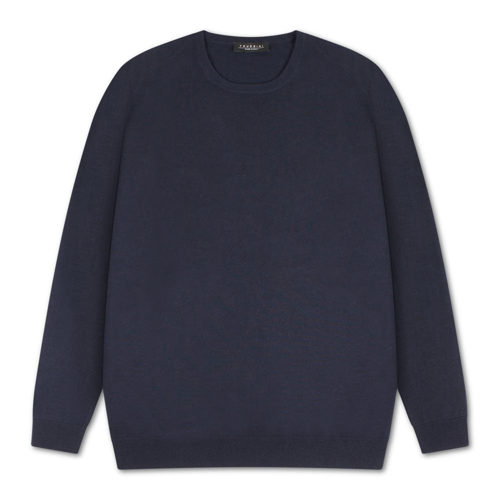 De Trussini trui in donkerblauw is gemaakt van zachte merino wol, die zorgt voor een luxe gevoel en uitstekende warmte. Het tijdloze ontwerp in een diepe blauwe kleur maakt de trui veelzijdig en gemakkelijk te combineren met verschillende stijlen.