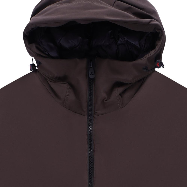 Korte jas gemaakt van stretch polyester canvas gecombineerd met een zachte en warme polyester jersey, dankzij de gebruikte fijne garens. De Thermoplume vulling - een volwaardig synthetisch alternatief voor ganzendons - zorgt voor warmte, zachtheid, lichtheid en een natuurlijke waterbestendigheid. Onderdeel van de Color Line, waar geometrische patronen tot leven komen om de donsjassen te versterken, in een speels en ironisch concept dat bovenkleding op een creatieve en gemakkelijke manier herinterpreteert. Het strakke, essentiële ontwerp is voorzien van een zwarte dubbele ritssluiting in het midden om de pasvorm aan te passen voor extra gebruiksgemak, paspelzakken aan de zijkanten, zwarte jersey windvangers en een capuchon met verstelbare trekkoorden voor optimale bescherming. De PFC-vrije waterafstotende behandeling - zonder milieubelastende chemicaliën - maakt dit kledingstuk ideaal voor alledaagse situaties, van vrije tijd tot reizen in de stad, met stijl en functionaliteit. Materiaal: 92% Polyester 8% Elastan
