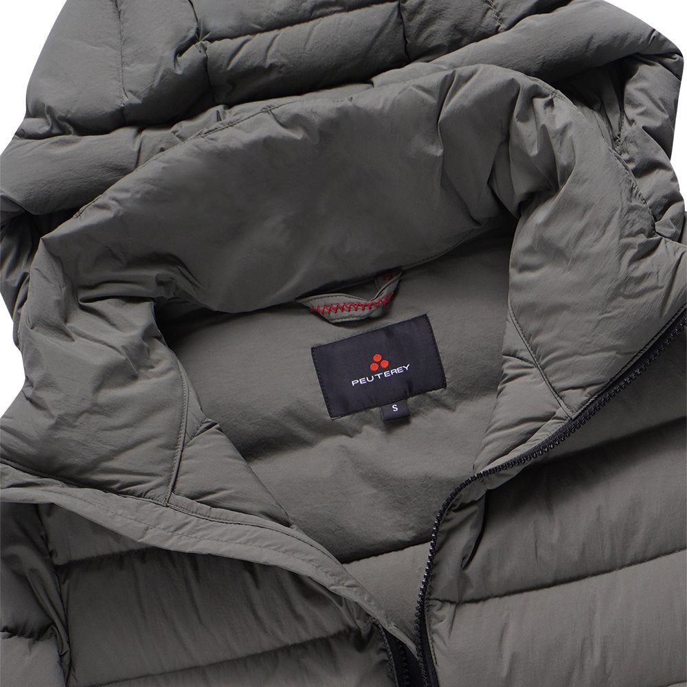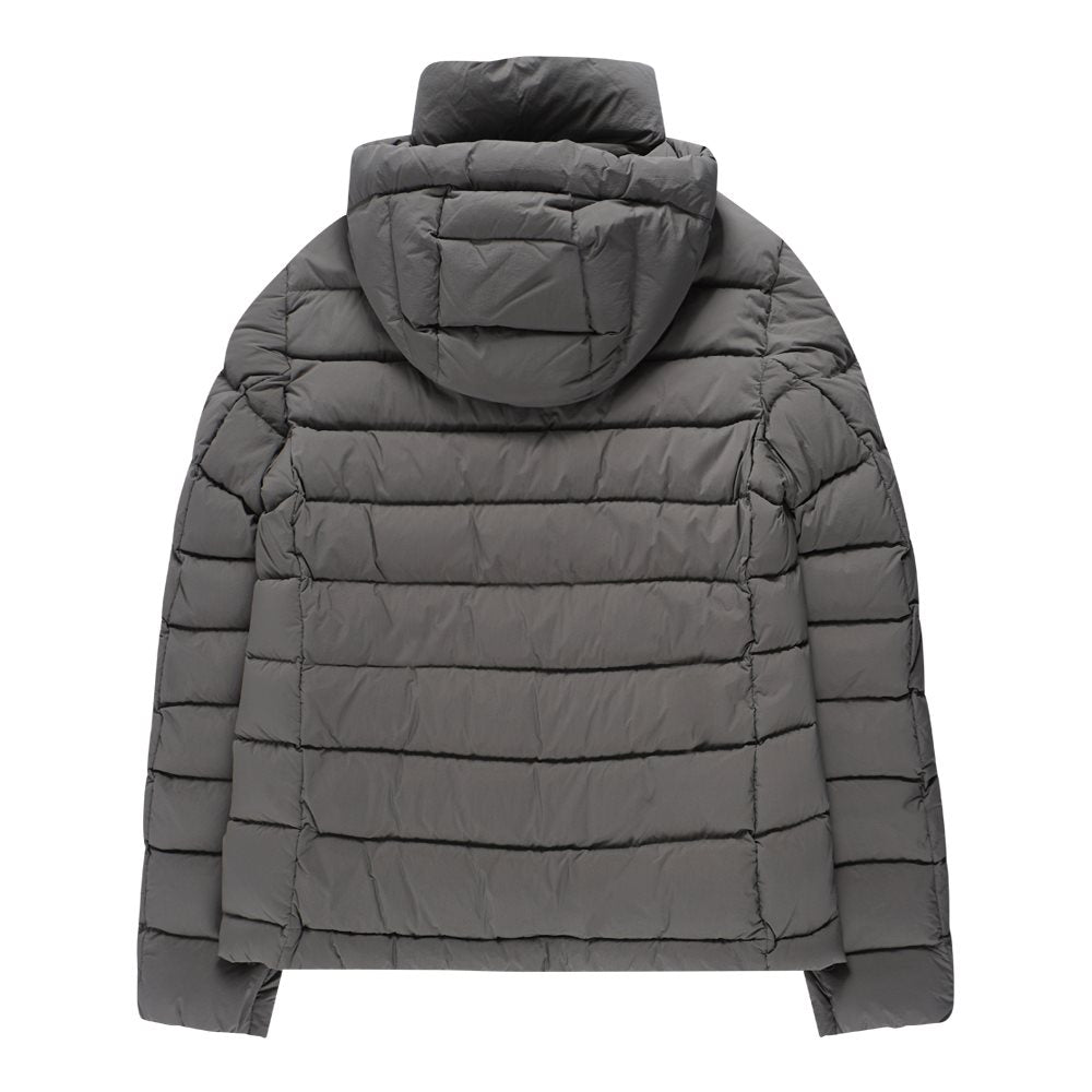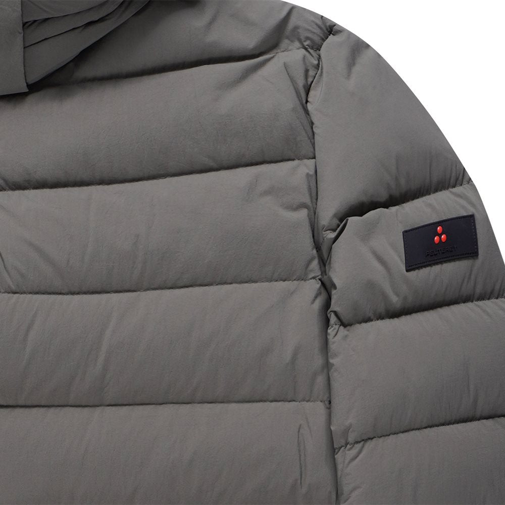 Een ultralichtgewicht nylon donsjack van 20 denier, weegt slechts 50 gram en heeft een semi-matte afwerking. De stiksels accentueren de essentiële lijnen van het kledingstuk, ontworpen voor maximale lichtheid en bescherming. De gecertificeerde natuurlijke donsvulling biedt warmte, ademend vermogen en comfort tijdens het koude seizoen. De stof is waterafstotend en donsdicht, met een PFC-vrije (gefluoreerde verbindingen) behandeling voor effectieve bescherming zonder schadelijke stoffen. Het ontwerp wordt gecompleteerd door een afneembare en verstelbare capuchon, opstaande kraag en zwarte details - een centrale ritssluiting met dubbele schuif, onzichtbare zijzakken en winddichte manchetten - om het sportieve en veelzijdige karakter te benadrukken. Materiaal: 100% Polyamide
