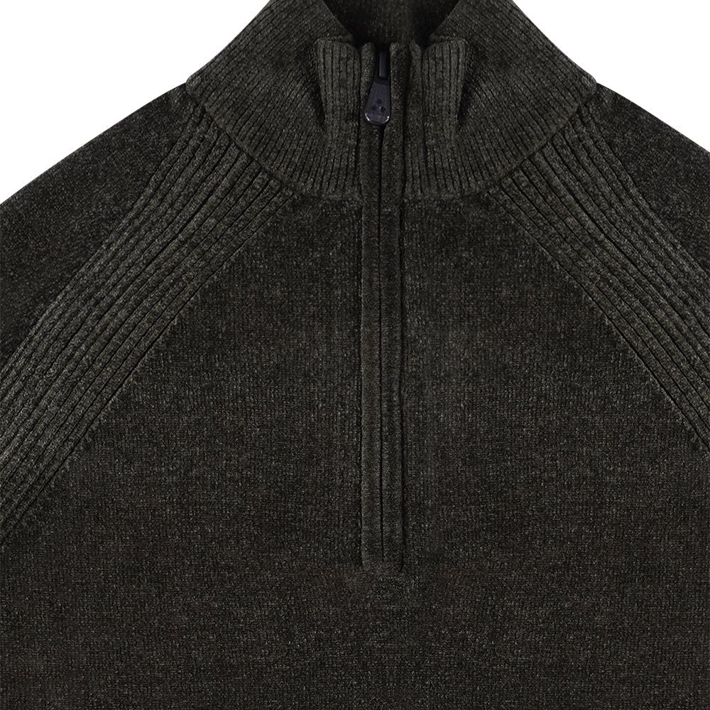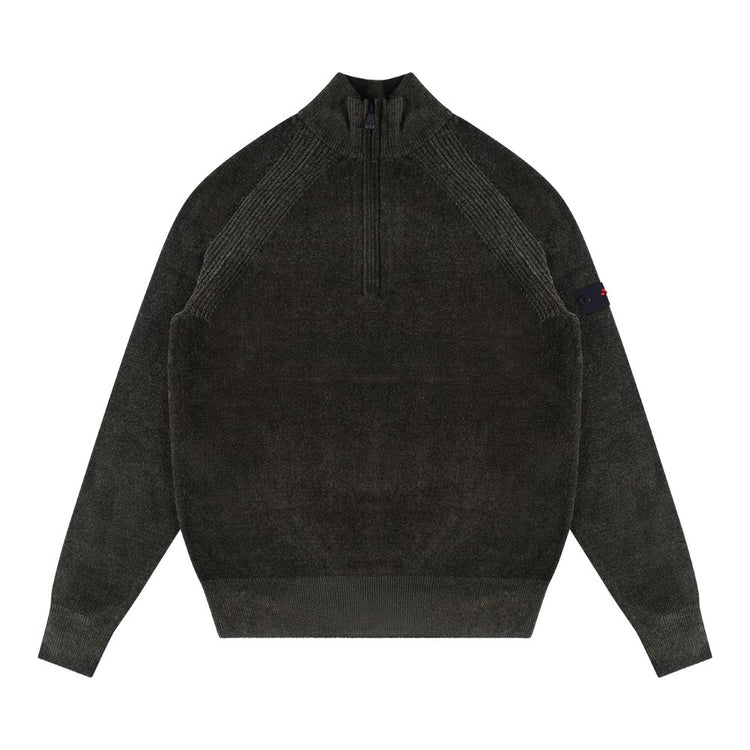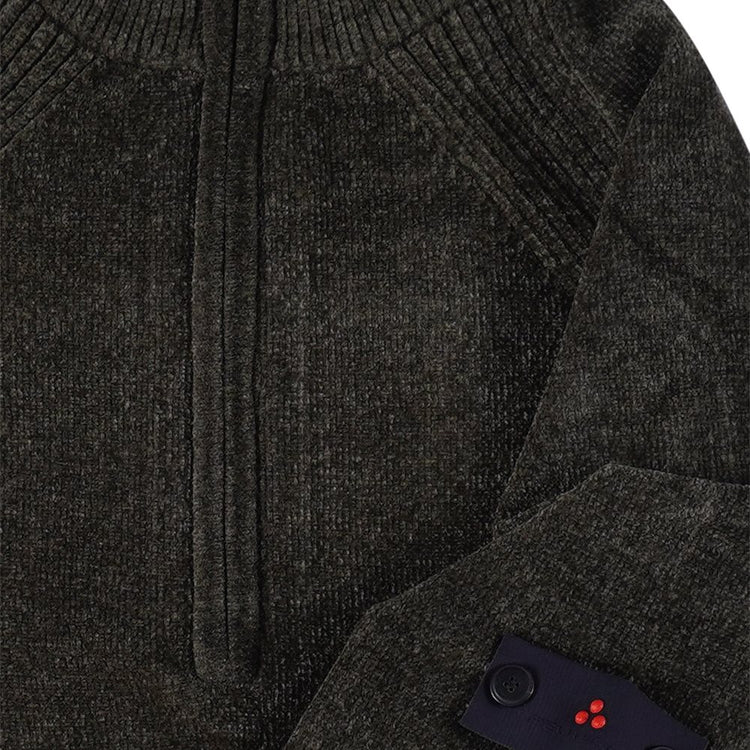 Geschoren chenille trui met opstaande kraag en halve rits, gekenmerkt door een elegante glans en een zacht, omhullend gevoel. Geribbelde details op de kraag, manchetten en zoom completeren het ontwerp met een moderne touch. Het trilogielogo van Peuterey - het iconische symbool van het merk - is met kleine knoopjes op de linkerarm aangebracht. Een veelzijdig en eigentijds kledingstuk dat je wintergarderobe stijlvol en comfortabel aanvult. Materiaal: 82% Polyester 15% Polyamide 3% Elastan