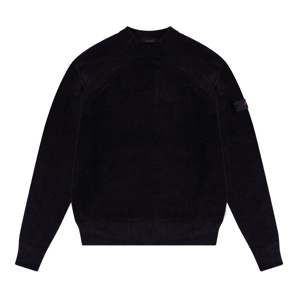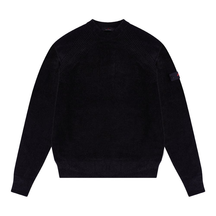 Zachte, geschoren chenille gebreide trui met ronde hals, een fluweelzachte textuur en een warme, omhullende feel. Geribbelde details op de kraag, manchetten en taille accentueren de pasvorm met elegantie. Het trilogielogo van Peuterey - het iconische symbool van het merk - is met delicate knoopjes op de linkerarm aangebracht. Een klassieke must-have in de herengarderobe, eigentijds en elegant dankzij de speciale stof. Voor een stijlvolle, casual look. Materiaal: 82% Polyester 15% Polyamide 3% Elastan