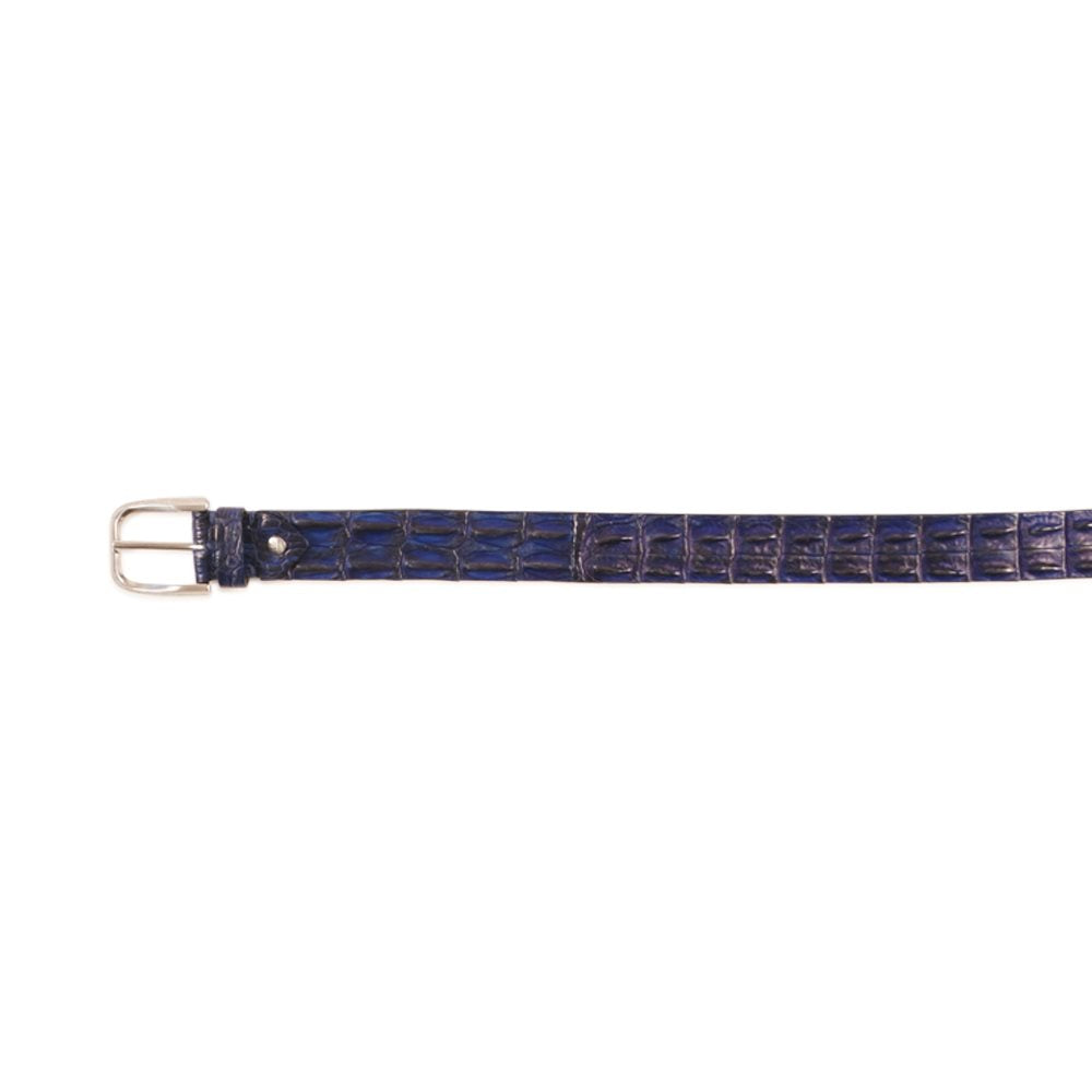 De Jan Pulles riem Croco in blauw is een stijlvol accessoire, gemaakt van hoogwaardig leer met een luxe krokodillenstructuur. De rijke, blauwe kleur in combinatie met de croco-textuur zorgt voor een opvallende en elegante uitstraling. Deze riem is perfect om een uniek accent toe te voegen aan zowel casual als formele outfits. Het Croco model in blauw is een veelzijdige keuze voor wie op zoek is naar een tijdloos en verfijnd accessoire.