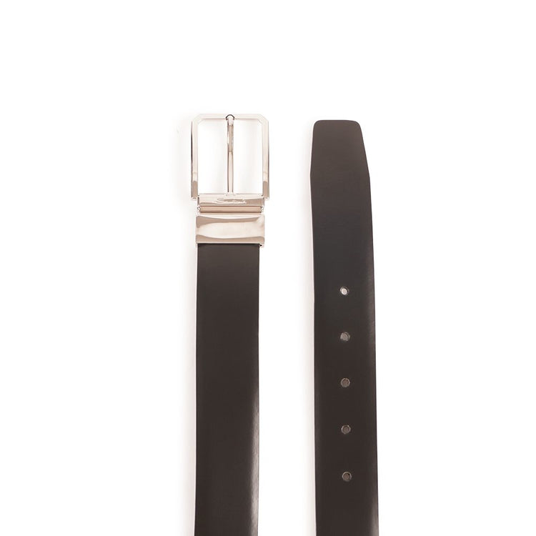 Zwarte herenriem van Santoni. De riem is gemaakt van leer met een contrasterende leren achterkant met de kenmerkende oranje tint van Santoni. De riem is draagbaar aan 2 kanten.