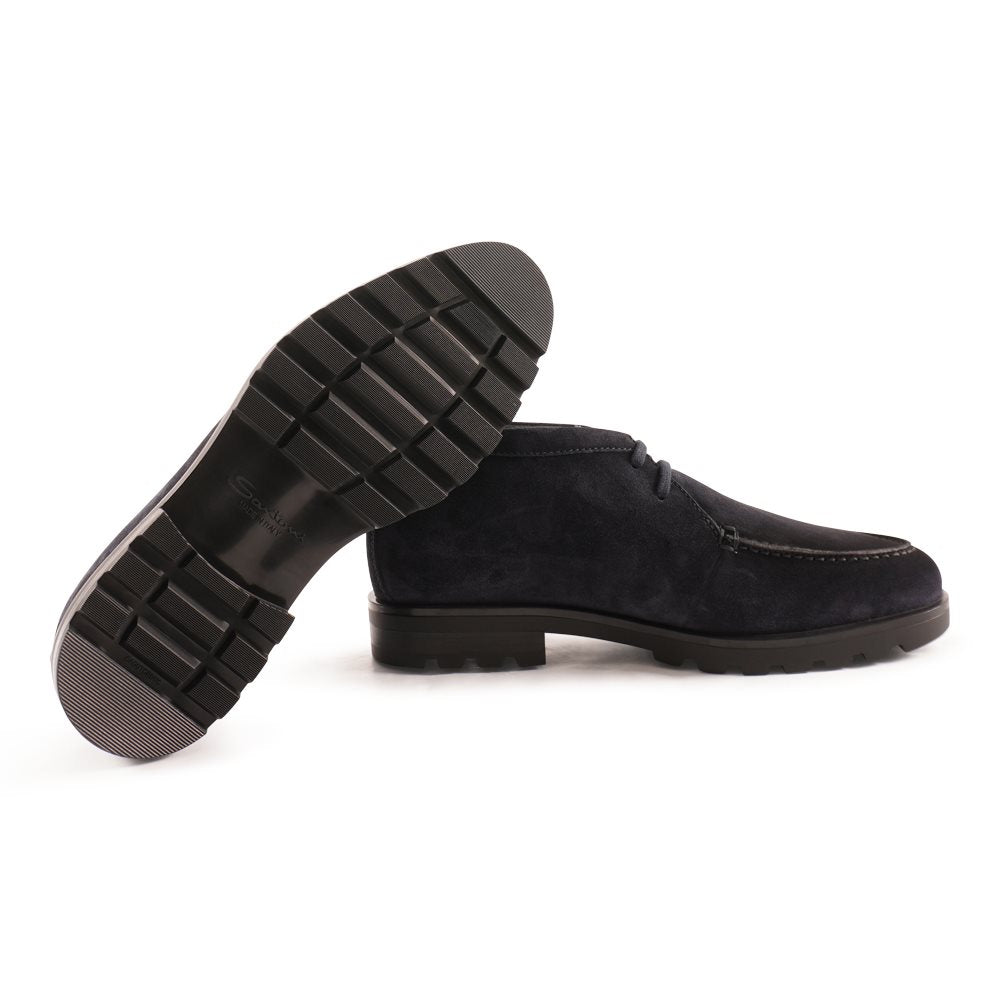Deze stijlvolle desert boots van Santoni combineren moeiteloos Italiaans vakmanschap met dagelijks draagcomfort. Het zachte suède zorgt voor een luxe uitstraling, terwijl de robuuste rubberen zool grip en duurzaamheid biedt. De oranje kenmerkende voering geeft een verrassend contrast en benadrukt het exclusieve karakter van de schoen.