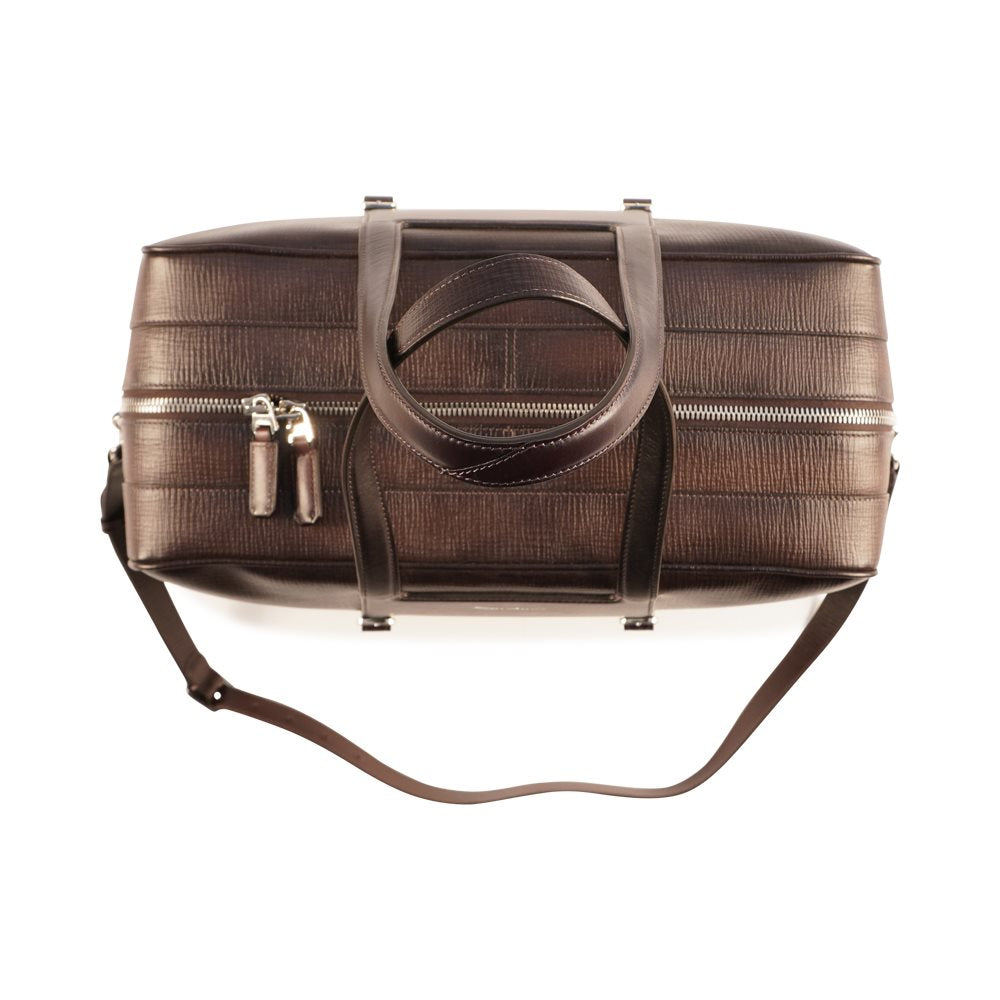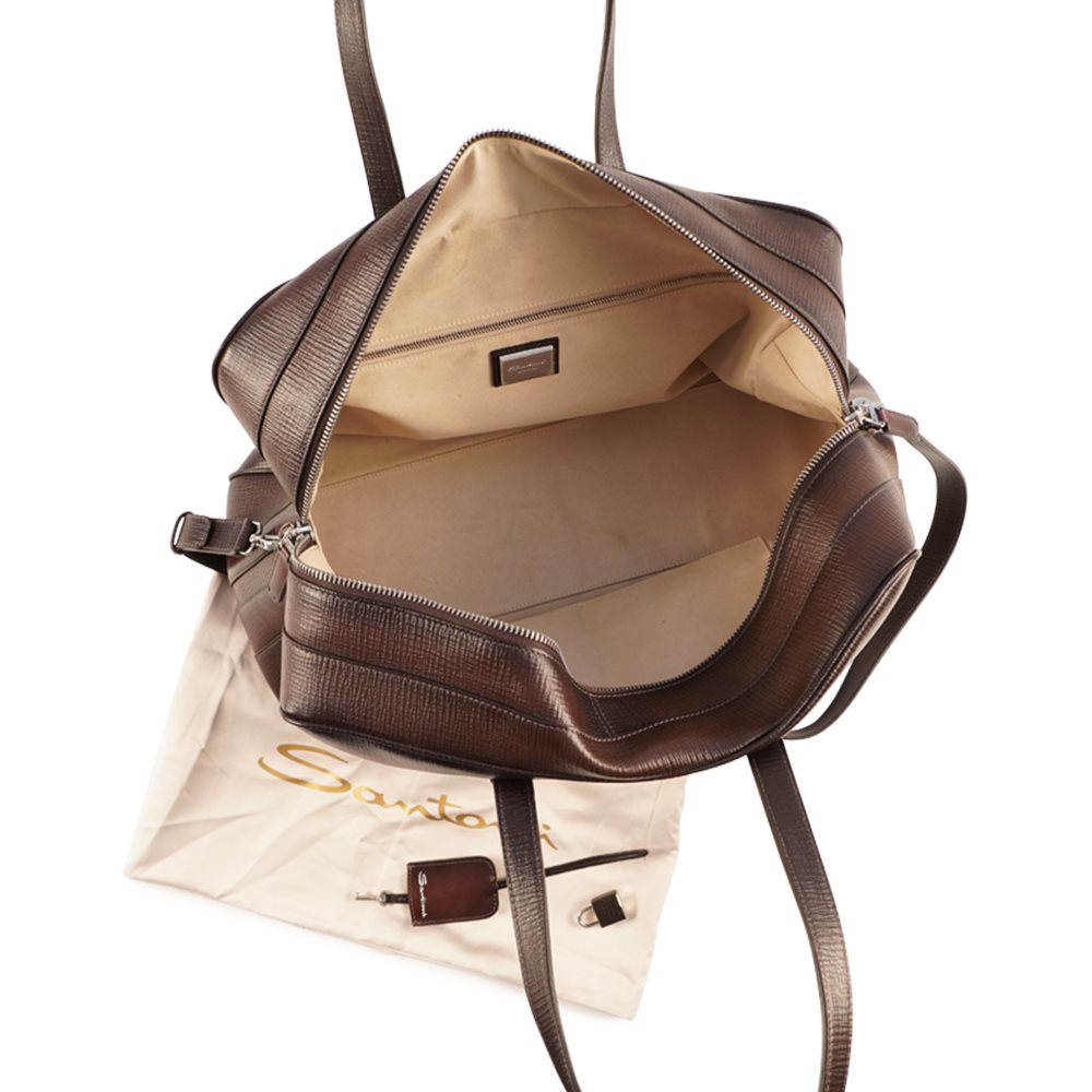 Maak kennis met de Santoni weekendtas, de ultieme combinatie van elegantie en functionaliteit voor elke reis. Deze tas, vervaardigd uit luxe leer, is ontworpen voor de veeleisende reiziger die stijl wil combineren met praktisch gemak. Het ruime interieur biedt voldoende plek voor je kleding, schoenen en accessoires, terwijl de hoogwaardige afwerking en stevige ritsen zorgen voor duurzaamheid en een verfijnde uitstraling. Of je nu een ontspannen weekendje weg plant of een korte zakenreis maakt, met de Santoni weekendtas reis je in stijl en comfort, klaar voor elke bestemming.