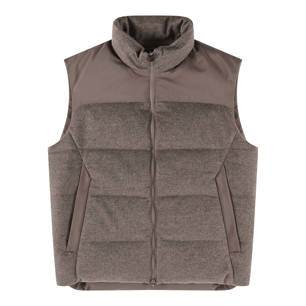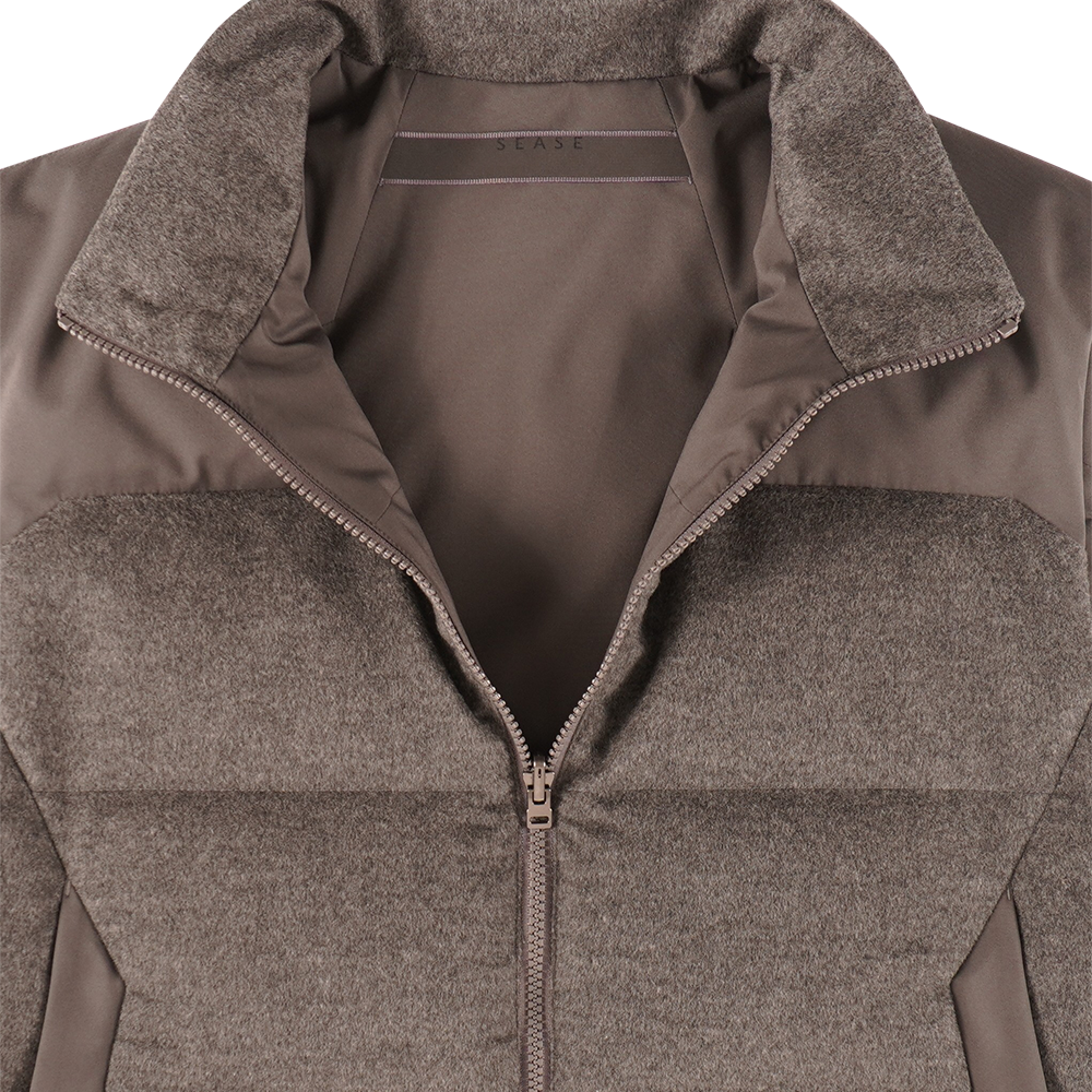 Dit vest van Sease belichaamt verfijning en functionaliteit, waardoor het de ideale keuze is voor stadsreizigers. Gemaakt met een luxueuze combinatie van 100% gerecycled dons voor isolatie en garengeverfde kasjmierstof, combineert het naadloos stijl met duurzaamheid. De toevoeging van waterafstotende technische stof op de schouders en details zorgt voor bescherming tegen water en wind zonder in te leveren op ademend vermogen. Het volledig omkeerbare ontwerp biedt veelzijdigheid, waardoor dragers moeiteloos kunnen wisselen tussen twee verschillende looks. Met functies zoals een volledige ritssluiting aan de voorkant en een zorgvuldige balans tussen comfort, duurzaamheid en elegantie, herdefinieert dit vest moderne bovenkleding voor het stadsleven.