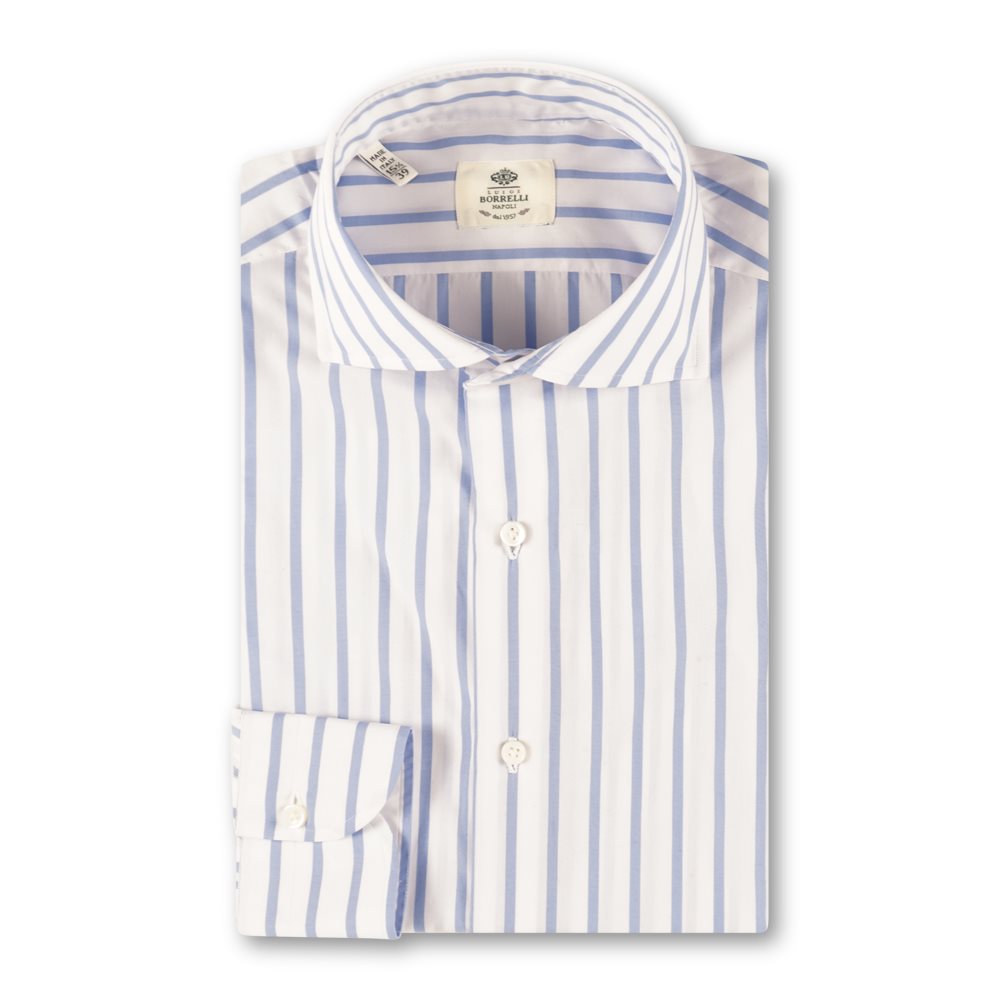 De zorgvuldige afwerking, zoals de fijn gestikte naden en premium knopen, benadrukt de aandacht voor detail die dit overhemd bijzonder maakt. Dankzij de duurzame materialen behoudt het zijn vorm en uitstraling, zelfs na veelvuldig dragen. Draag het Luigi Borrelli overhemd onder een blazer voor een elegante look of combineer het met jeans voor een meer ontspannen, maar toch stijlvolle uitstraling. Voeg een vleugje verfijning toe aan je garderobe met dit hoogwaardige overhemd!