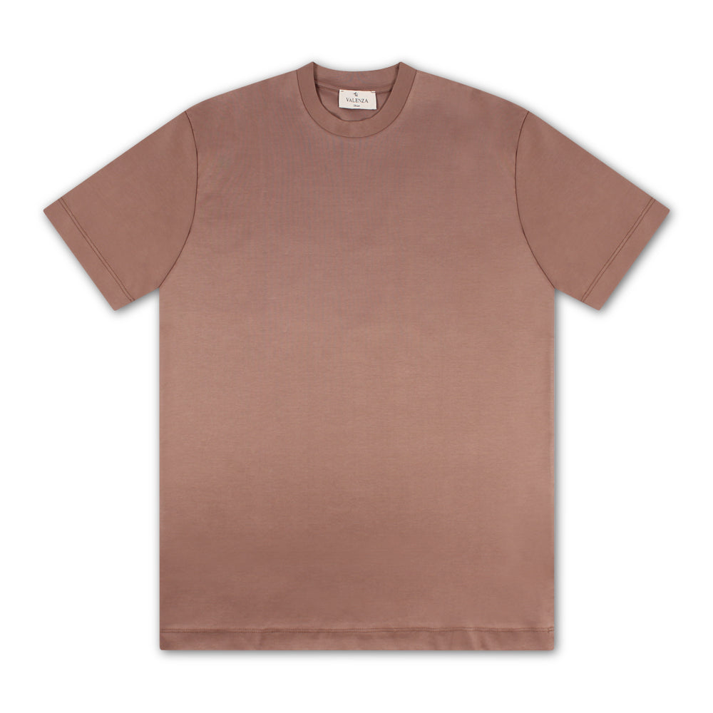 Het Valenza T-shirt in bruin is een stijlvolle toevoeging aan je garderobe, vervaardigd uit hoogwaardig gemerceriseerd Supima katoen dat bekendstaat om zijn uitzonderlijke zachtheid en glans. Dit T-shirt met korte mouwen biedt een comfortabele pasvorm en heeft een verfijnde uitstraling, perfect voor zowel casual als meer geklede gelegenheden. De warme bruine kleur voegt een unieke en chique touch toe aan je outfits en is eenvoudig te combineren met verschillende broeken, van jeans tot nette pantalons. Geniet van de luxe en duurzaamheid van dit Valenza T-shirt, ideaal voor een moeiteloze, elegante look.