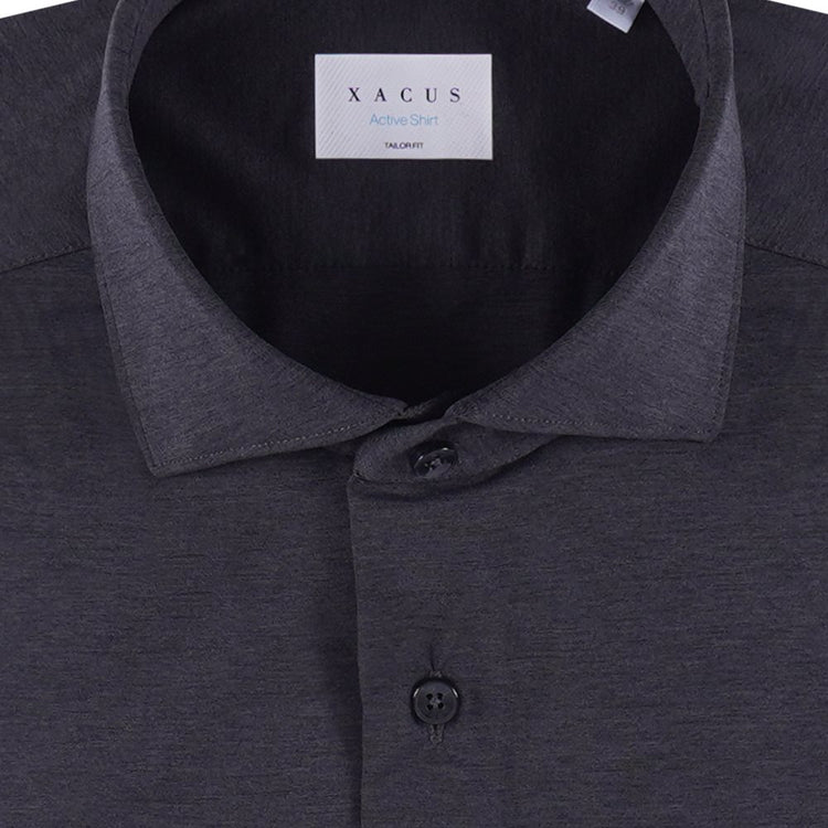 Het Xacus overhemd in het donkergrijs is een tailor fit model met stretch. Gemaakt van jersey materiaal met polyamide en elastan voor optimaal draagcomfort.