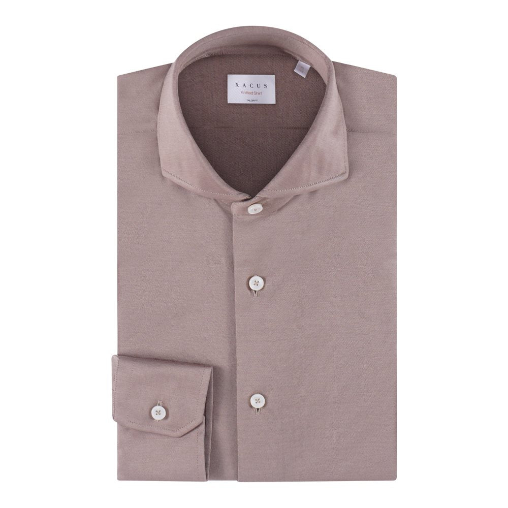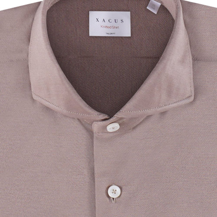 Het Xacus overhemd in het Taupe is een tailor fit knitted shirt. Gemaakt van katoen voor een comfortabele pasvorm.
